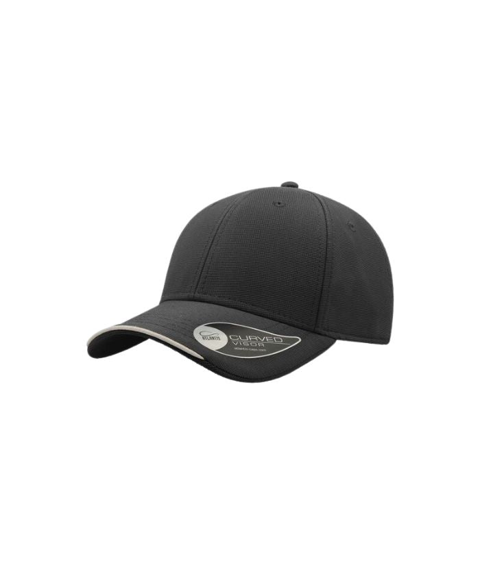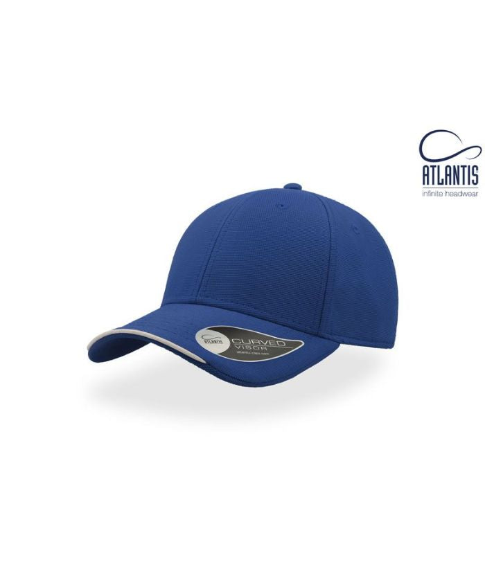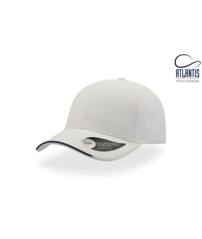A 6-panels baseball cap in polyester jacquard fabric, with a contrasting piping on visor and long velcro with plastic buckle at rear.