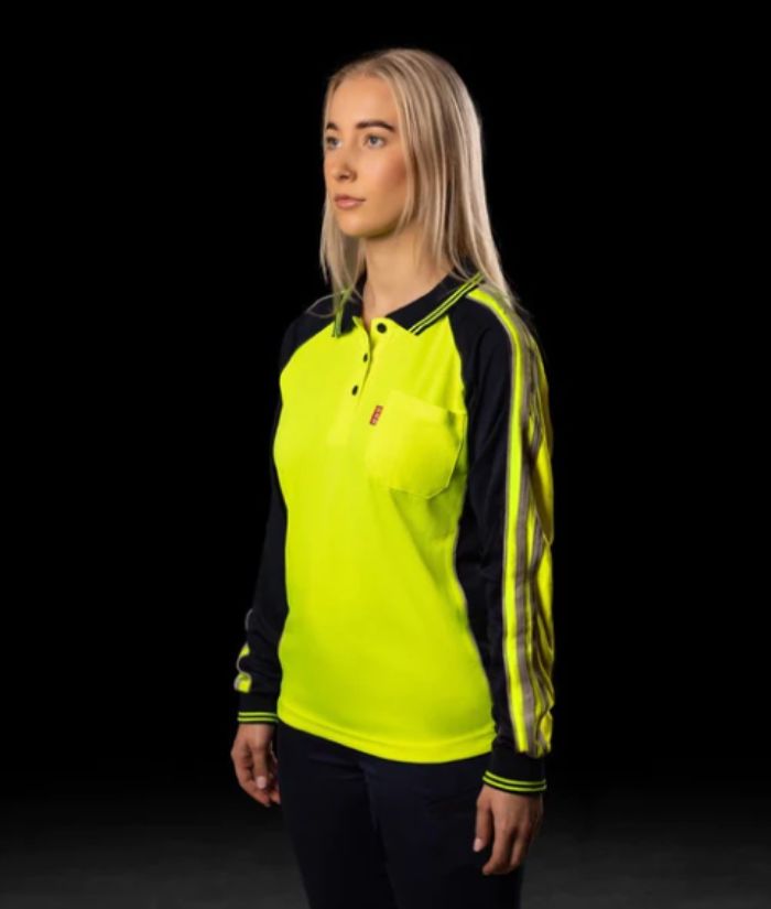 Bad Workwear Hi Viz Women's Long Sleeve Polos Shirt