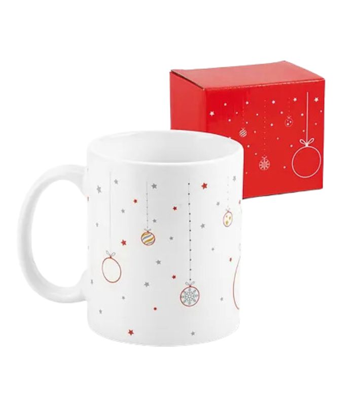 Ceramic mug with Christmas decoration and capacity up to 340 mL. Supplied in a gift box 81x97 mm.