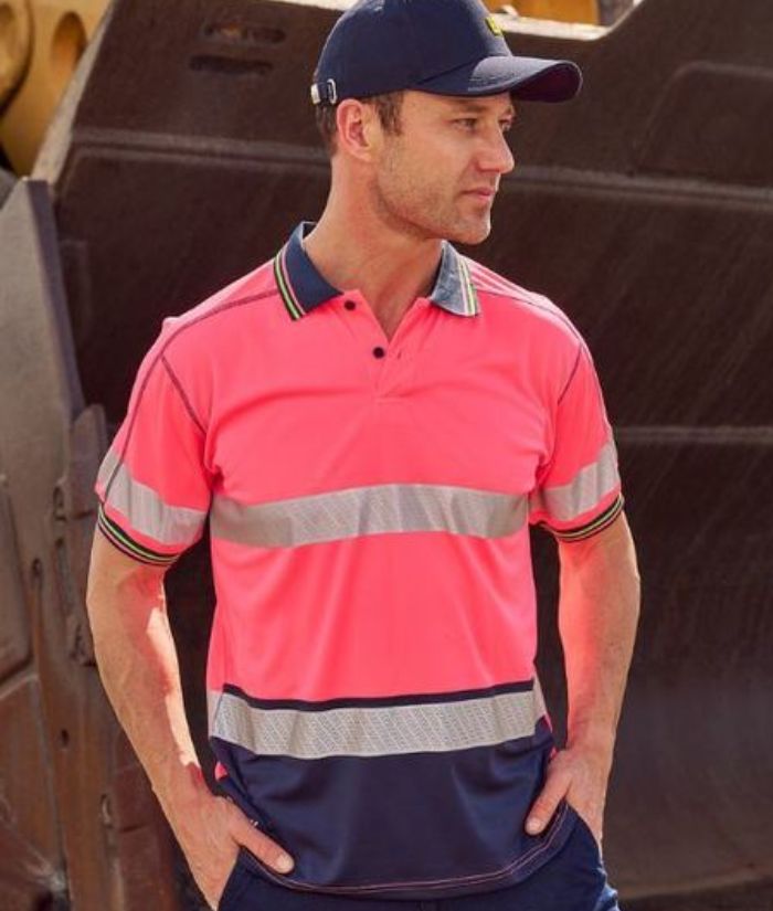 Contrast coloured ribbed collar and cuff with double hi vis tipping