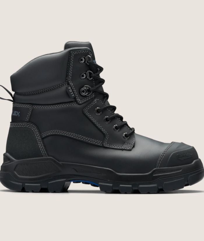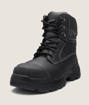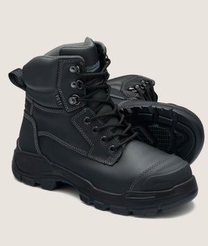 - Black water-resistant leather upper safety boot—150mm height