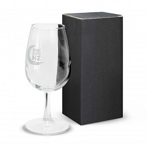 Small 215ml wine glass which is ideal for wine tasting, food festivals and events. Optional black gift box