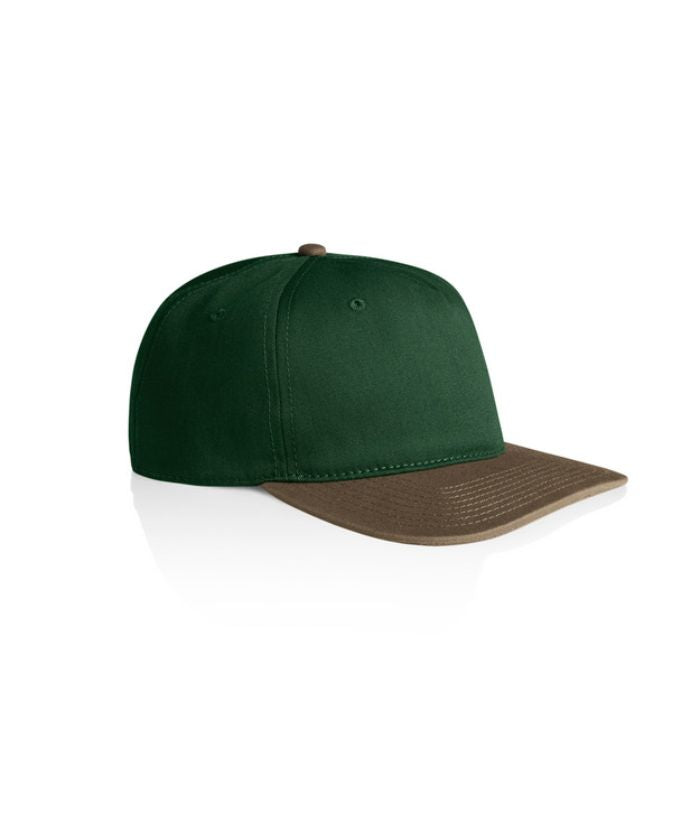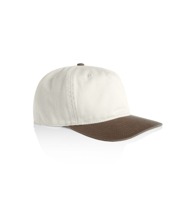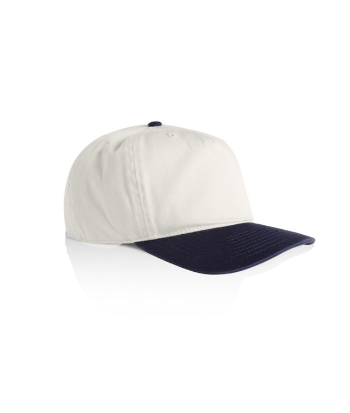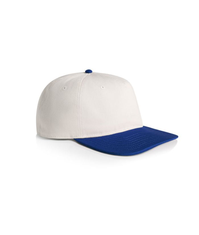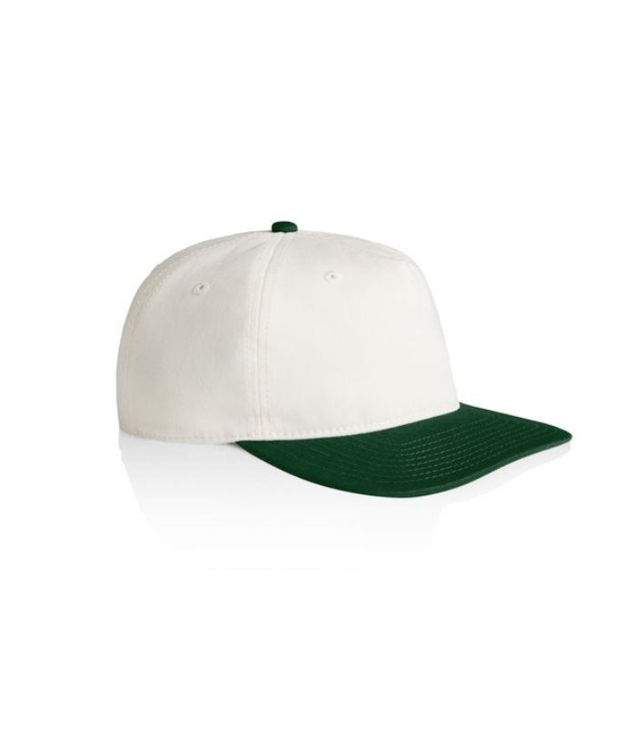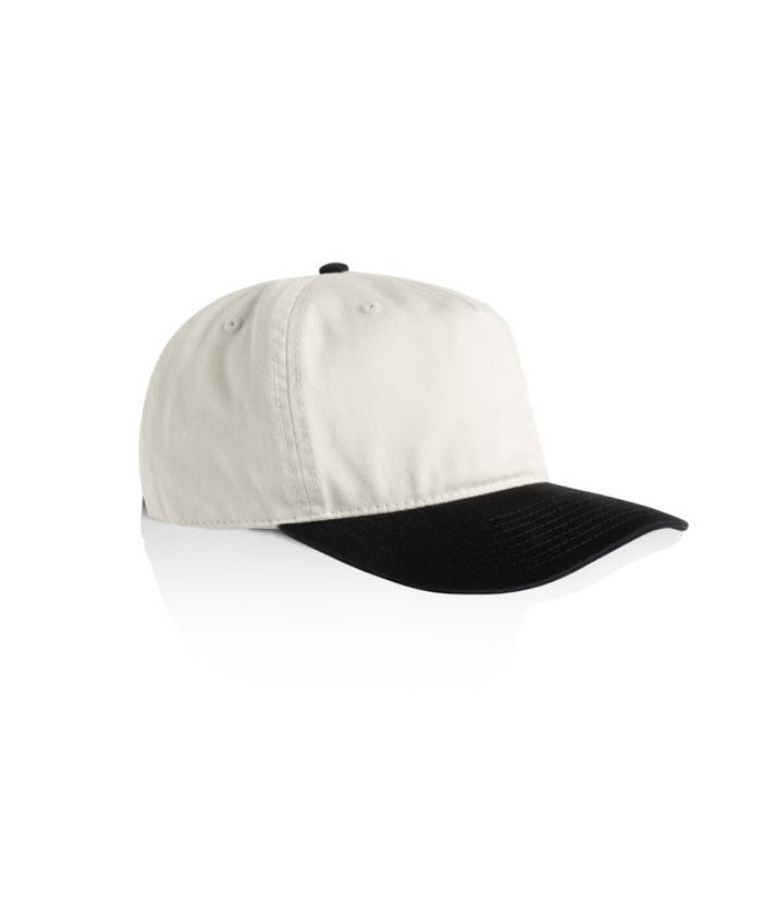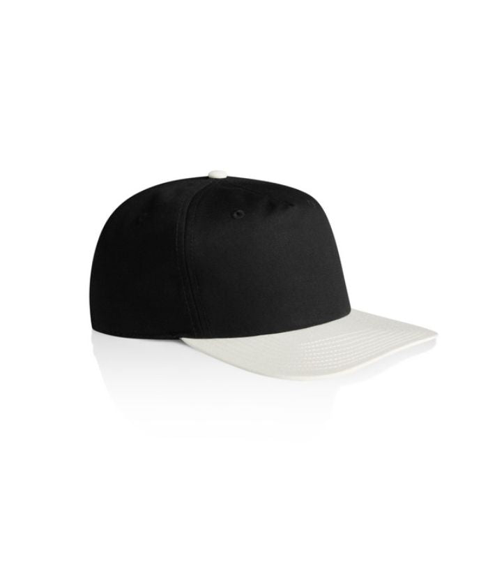 Introducing the AS Colour Class Two-Tone Cap: A lightweight, mid-profile five-panel cap crafted from 100% cotton. Featuring a stylish contrast dome, flat peak, plastic snapback closure, and tonal eyelets for ventilation. One size fits all, with the convenience of a tear-out AS Colour label for customised wear.