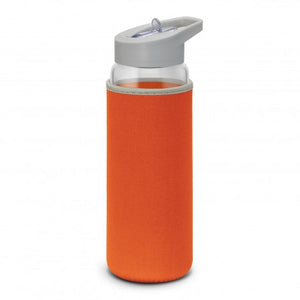 Desirable 700ml borosilicate glass drink bottle which has a soft, insulating neoprene sleeve that keeps drinks cool for longer.