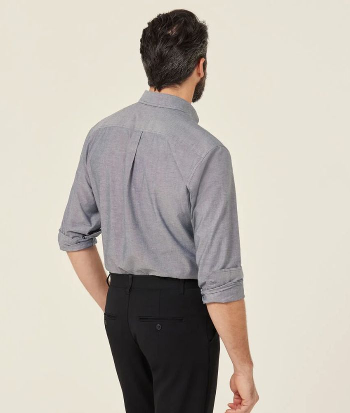Take a considered approach in the new Cotton Chambray Long Sleeve Shirt. Cut for a regular fit, the classic button-through design is both easy to wear and care for. You'll appreciate the natural and breathable 100 percent cotton fabrication with a textured weave for a denim-style look that's soft to the touch. A shirt-tail hemline and box pleat at the back offer extra room to move, while the long, tailored sleeves are finished with a double-button adjustable cuff.