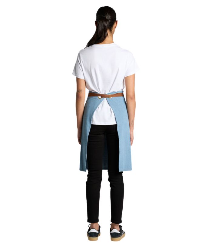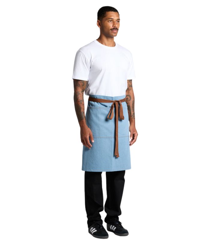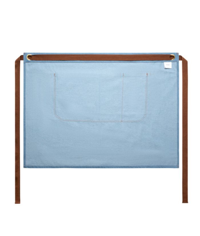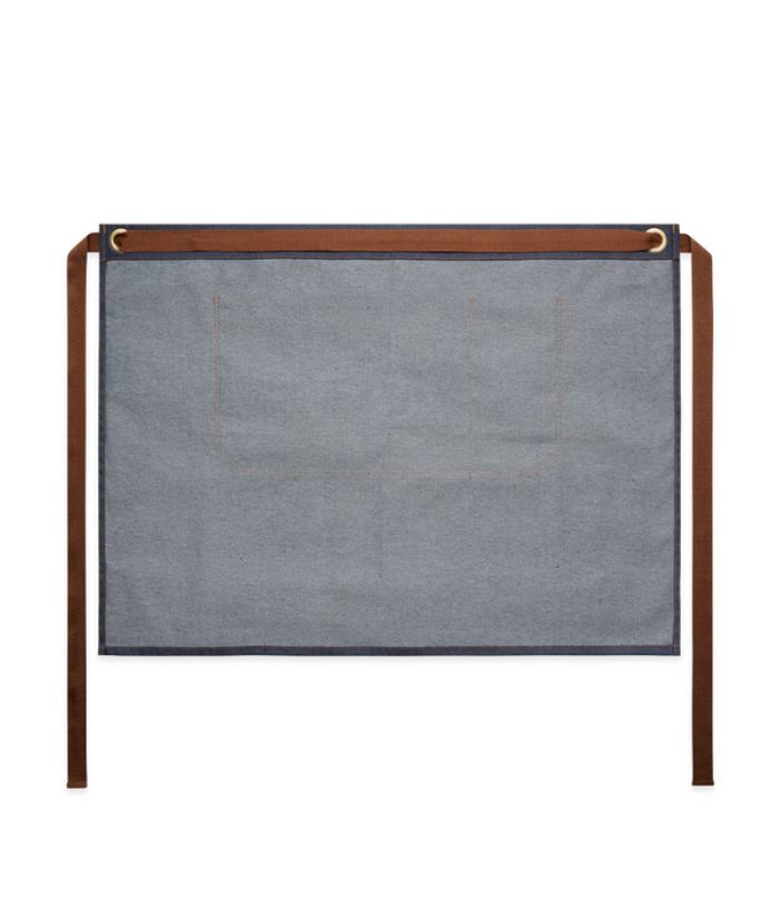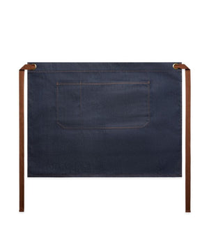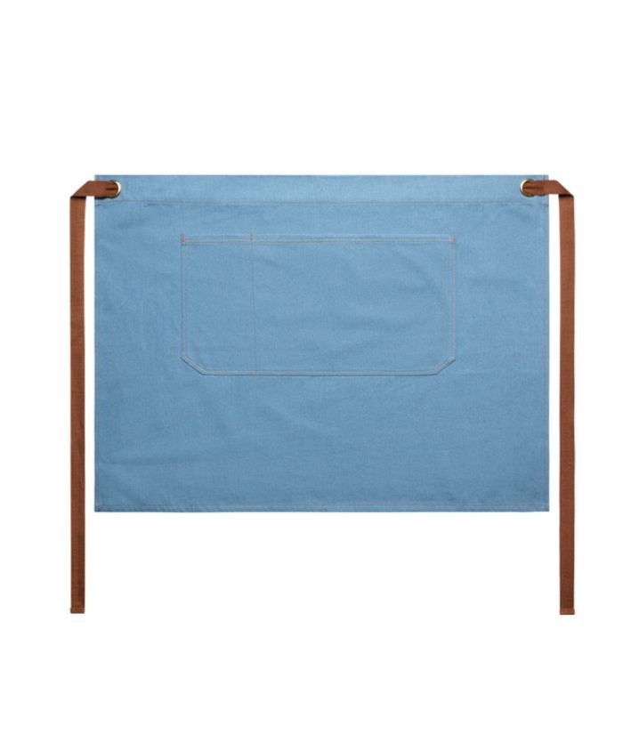This denim half apron is made of heavy-weight 350 GSM 100% cotton with a removable herringbone waist strap, metal eyelets, and a spacious front patch pocket. Preshrunk for minimal shrinkage.