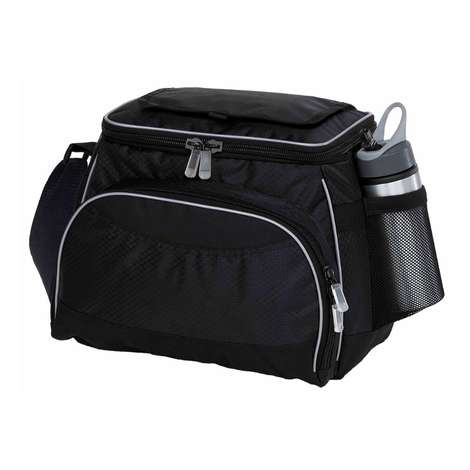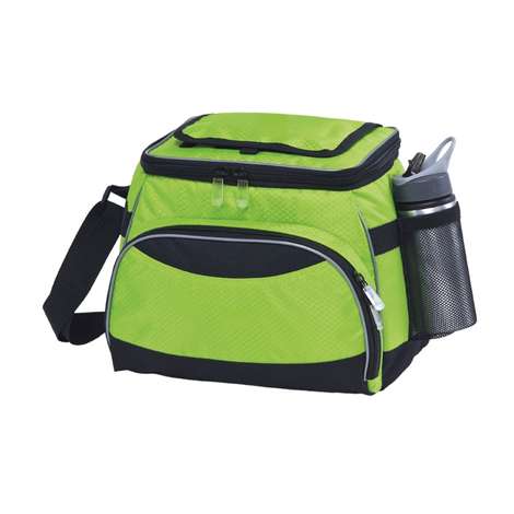 Insulated cooler bag with external mesh drink bottle pocket