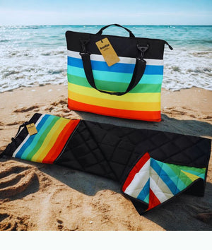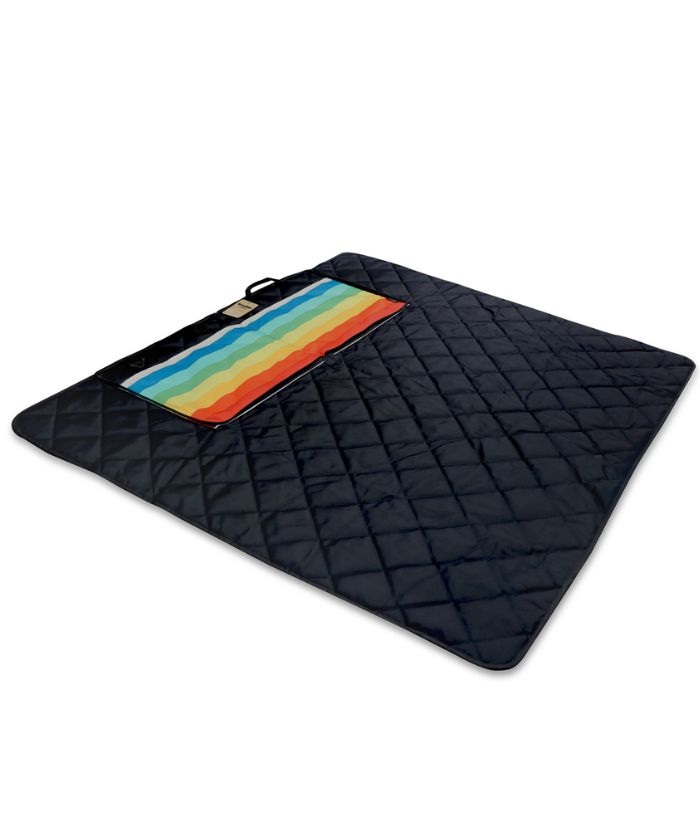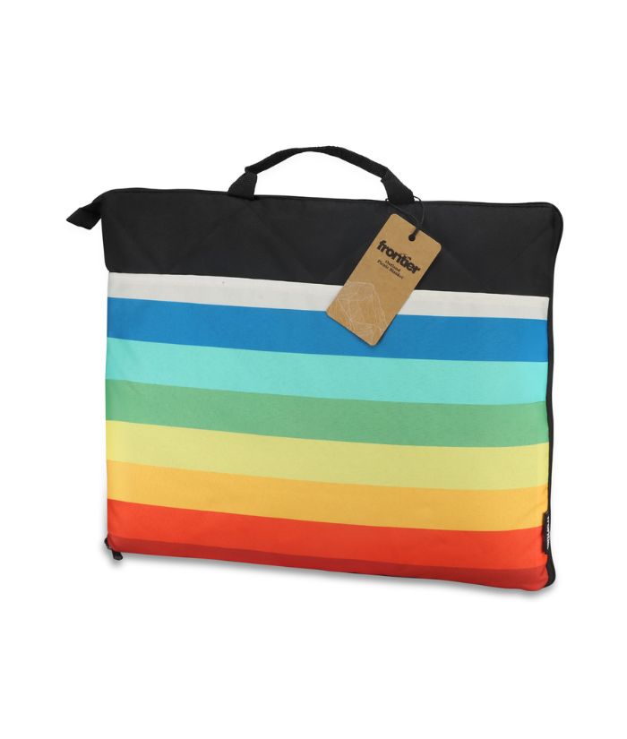 Bright, versatile, and built for the outdoors, the Frontier Outland Picnic Blanket is the perfect companion for picnics, camping, and weekends away. Made from durable, 600D polyester with a striped design, it features a water-resistant polyester taffeta backing. It easily folds into a handy pillow with a secure zip closure, with large front and back slip pockets for storage and brand visibility. Finished with woven carry handles and an adjustable, removable shoulder strap making it easy to transport. Presented with a Frontier branded hangtag.