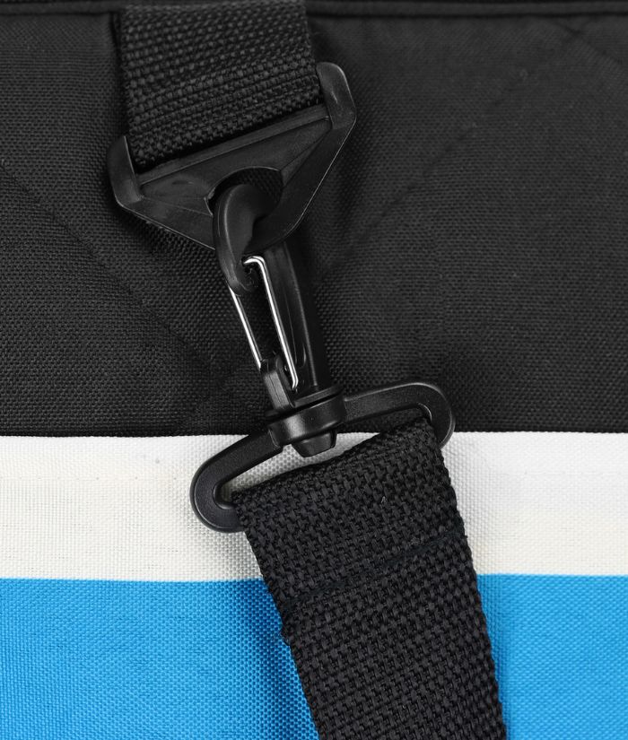 - Woven carry handles and a shoulder strap that can be adjusted or removed