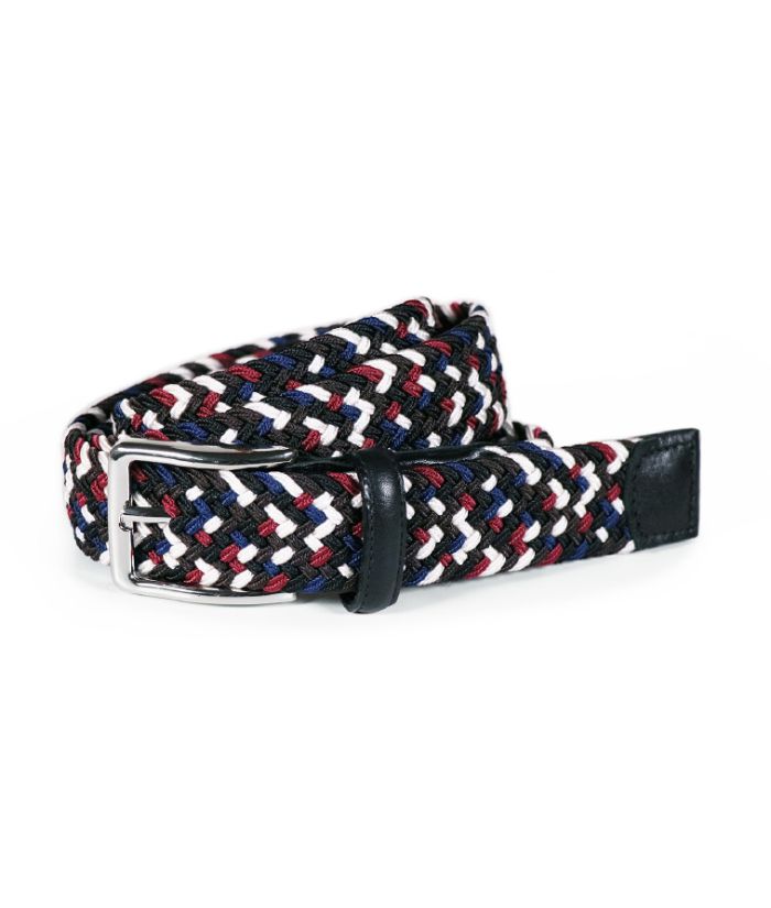 This multi coloured stretch braid combines versatility and comfort. Blending navy, chocolate, wine and white, it enhances and complements any casual trousers or shorts.
