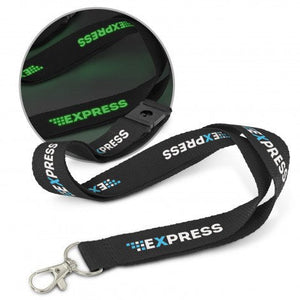 20mm wide polyester lanyard which is printed with glow in the dark ink.