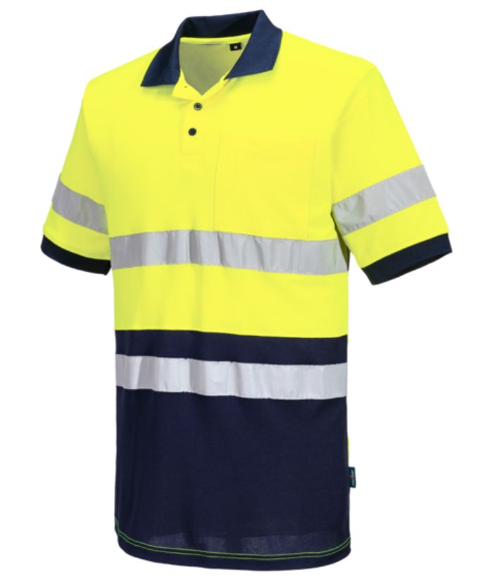 The Cotton Comfort Polo Shirt is designed for both comfort and style. Featuring reflective tape on the body and torso, it helps keep you visible in low-light conditions. A convenient chest pocket adds practicality, while the contrast navy lower half and ribbed collar give it a sharp, modern look. The 3-button placket completes this versatile shirt, perfect for work or casual wear.