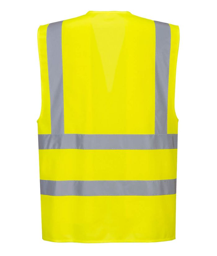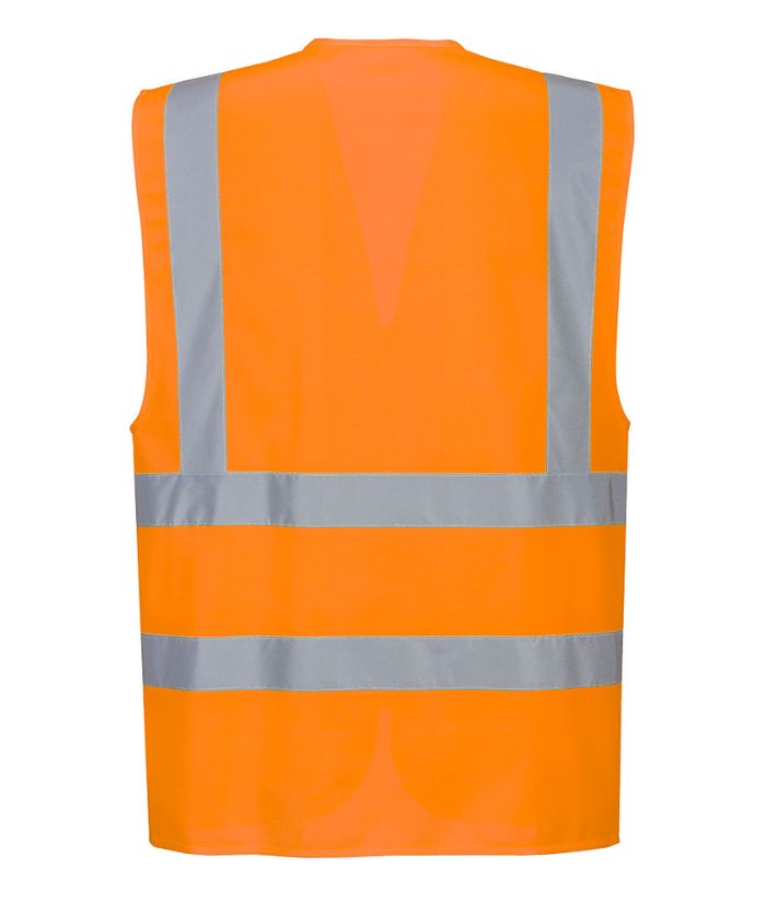 Revolutionary in its design, the executive vest combines the light weight of a waistcoat with the practicality of pockets for those situations when a jacket may be too warm. A clear ID pocket for security passes and cards complements this unique garment.