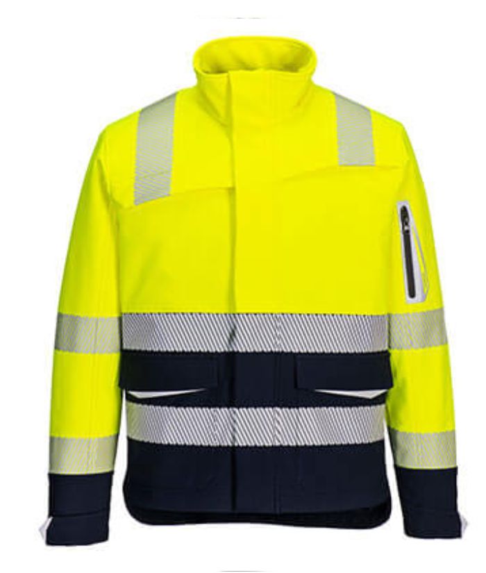 This style is designed for ultimate visibility with a contemporary contrast look. Offering waterproof zip pockets and storm flap closure for enhanced protection. Lightweight, comfortable and durable this jacket is ideal for all types of environments.