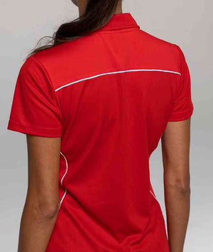 Set in sleeve polo with self fabric collar, front & back yoke and side panel in ice hole mesh with contrast piping and under front sleeve panel with contrast piping, New mesh knit (fabric name not been advise), 100% Polyester, 155gm, Dri-wear antibacterial finish, 100% Polyester Ice Hole mesh – 155gm (for front & back yoke and side panels), Ice Hole mesh at front & back yoke and side panels, Loose pocket provided (men’s only), Contrast self fabric under front placket