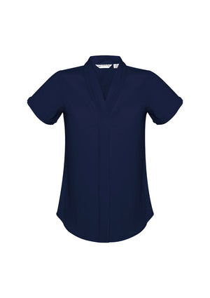The Madison short sleeve blouse is big on features and low on maintenance. Incorporating a secret button to prevent gaping a built in action back pleat and functional easy care fabric.