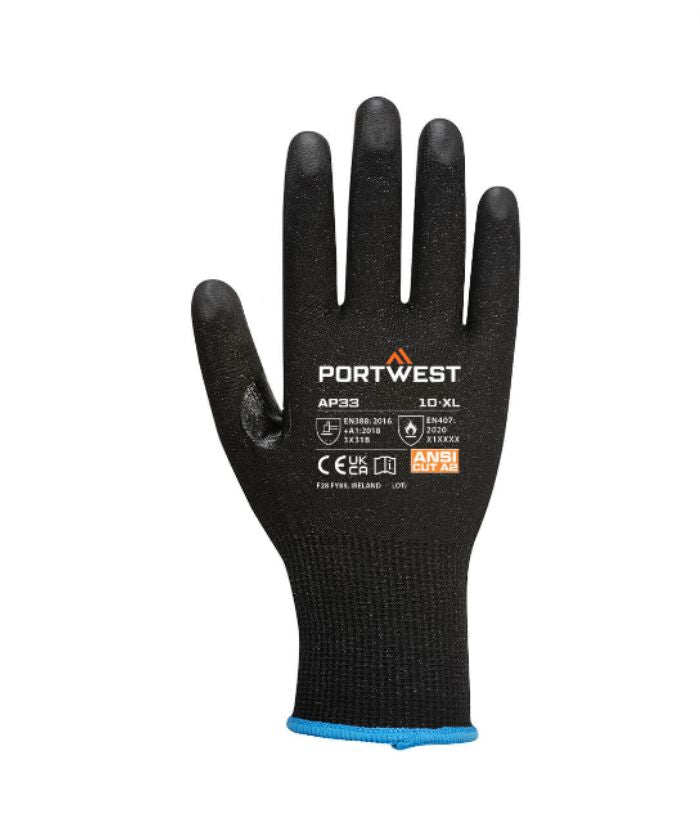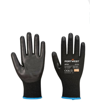Comfortable 15 gauge cut B liner provides excellent dexterity offering a “second skin” feel. The PU palm coating offers secure grip in dry conditions. Reinforced Thumb crotch for improved durability. Compatible with most touchscreen devices.