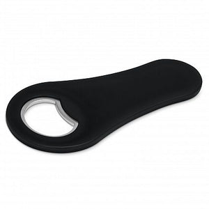 Plastic and metal bottle opener with a strong magnet for storing it on a fridge