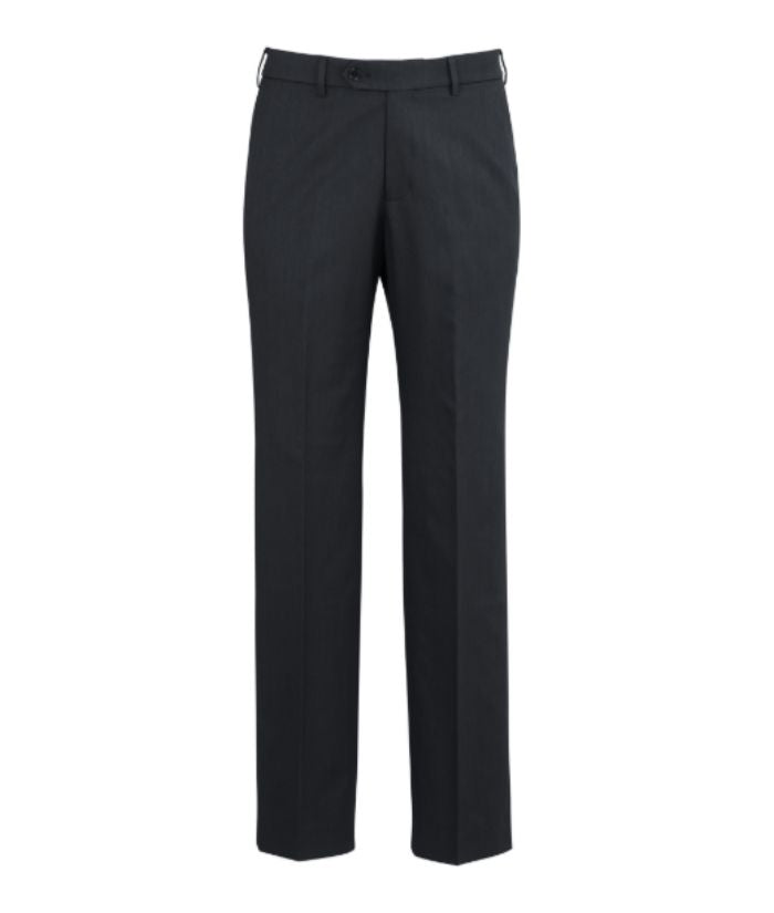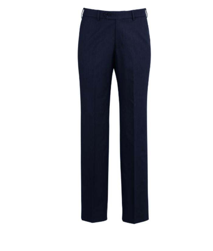 - Flat front and straight through the leg. With hidden elastic waistband for extra stretch and comfort. A ‘roomier’ mid-rise and deep side pockets.