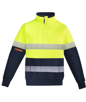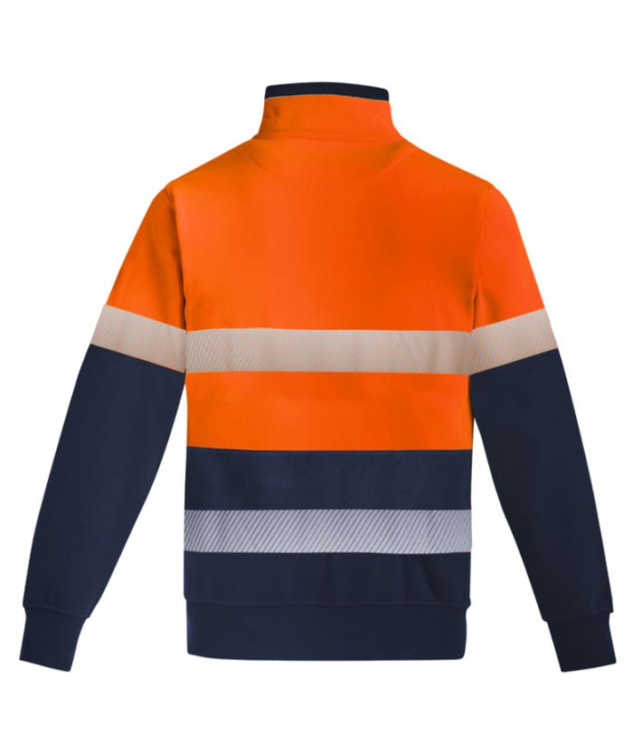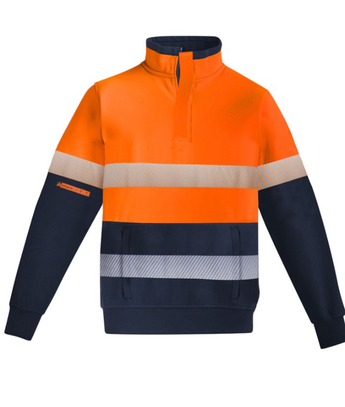 Mens Orange Flame Hi Vis 1/4 Zip Brushed Fleece Pullover - Hoop Taped