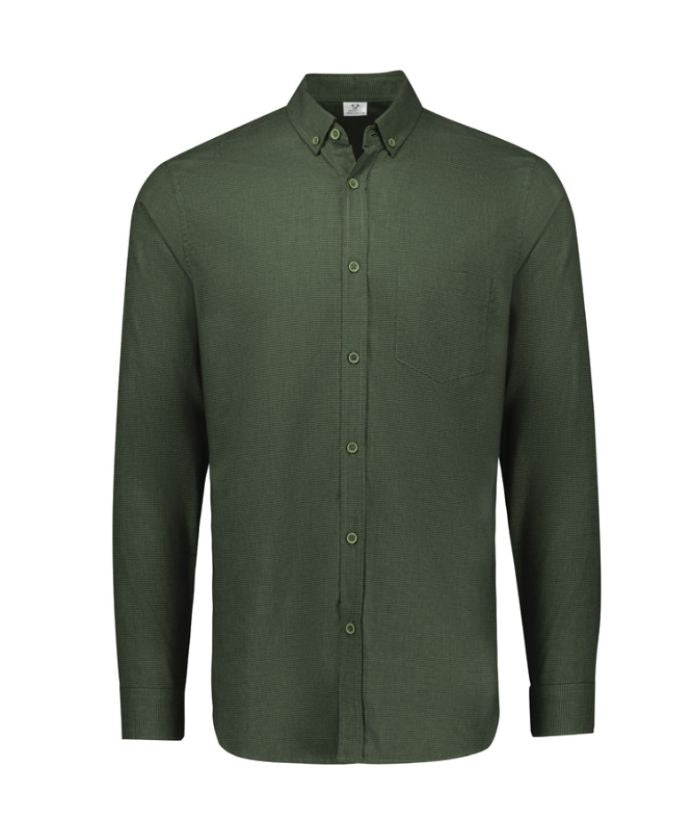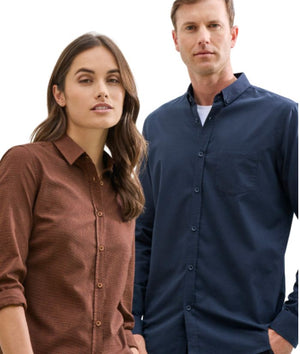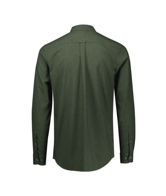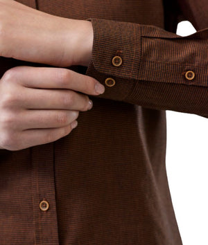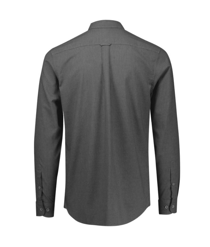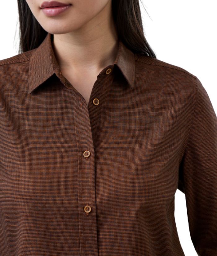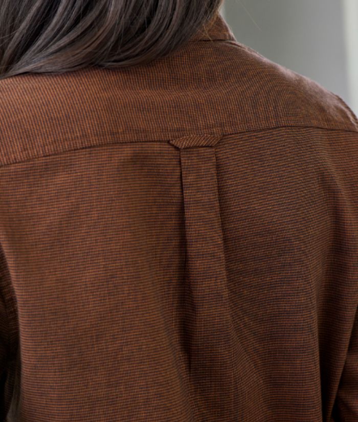 - 60% Cotton, 40% Recycled Polyester; Yarn-dyed Micro-check; 120 GSM; UPF Rating 15+
