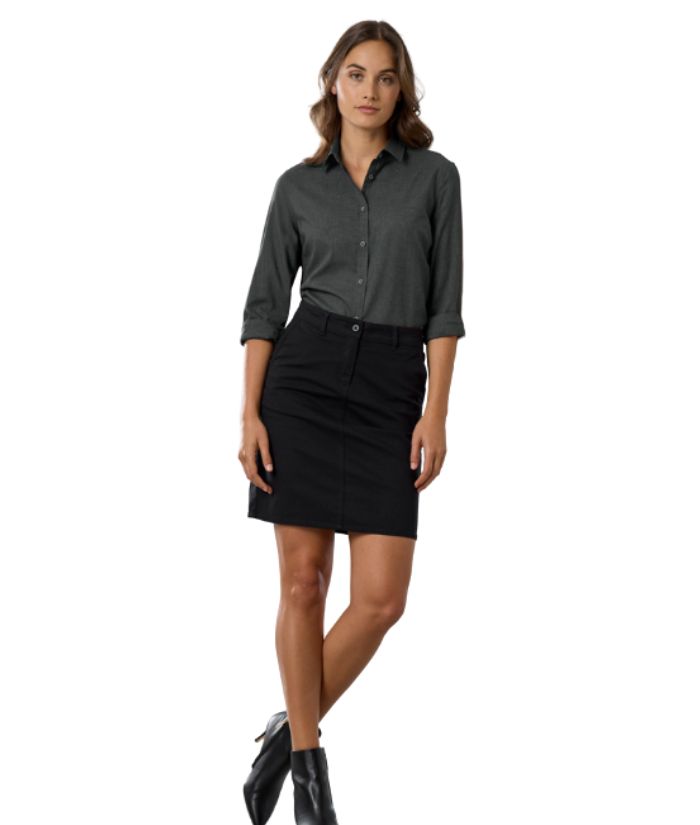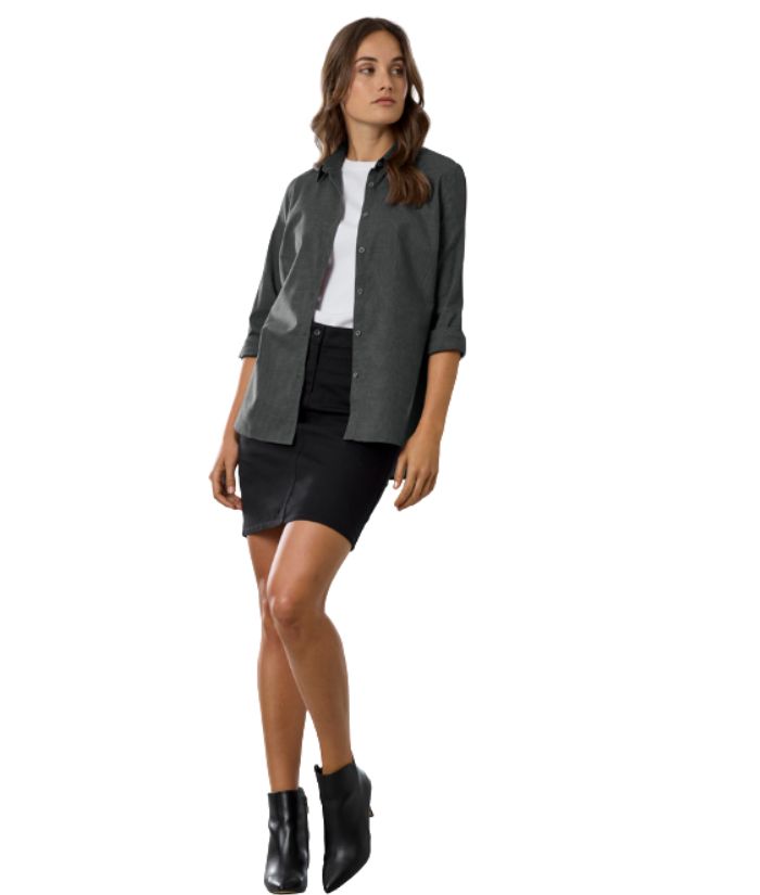 - Curved hem with inserts, can be worn tucked or untucked