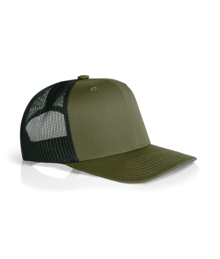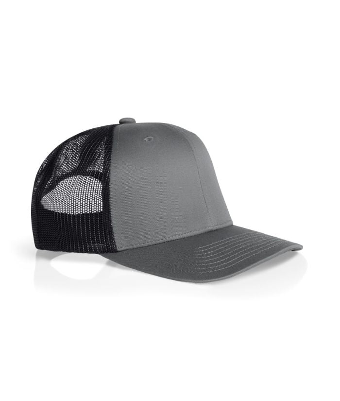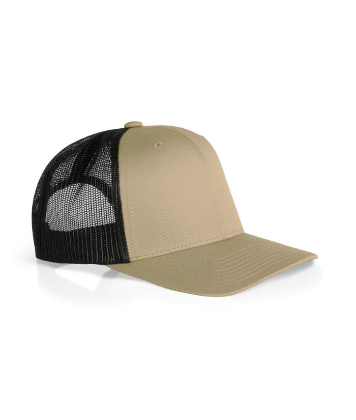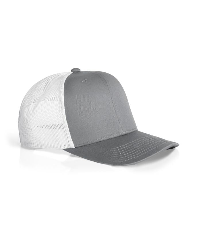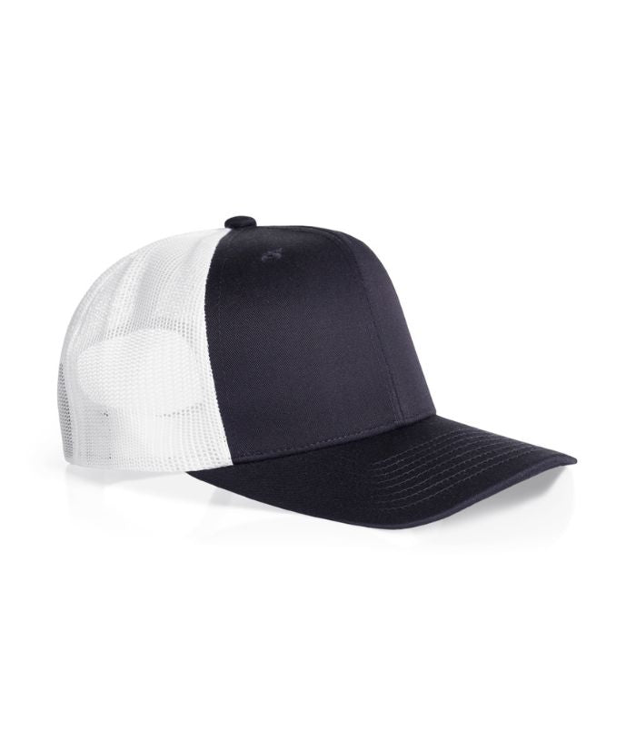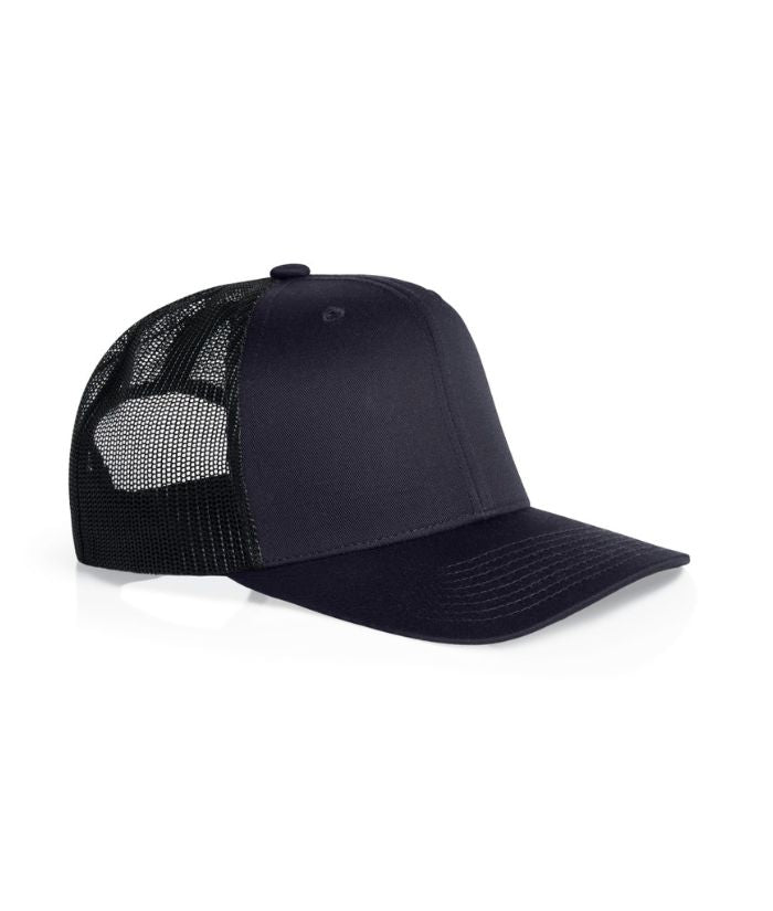 Mid weight 60% cotton 40% Recycled Polyester front and peak, 100% Recycled polyester mesh back