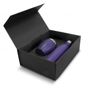 Stunning double wall, vacuum insulated stainless steel drinkware set which is beautifully presented in a black gift box. The set includes a 500ml Mirage Powder Coated Vacuum Bottle and a 300ml Verona Vacuum Cup which is also powder coated. Mirage has a secure screw-on stainless steel lid and will keep drinks cold for up to 24 hours and hot for up to 12 hours. Verona has a transparent push-on lid and will keep drinks hot for up to three hours. Both items laser engrave to a shiny steel finish and are BPA-free. These products are not dishwasher safe and handwashing is recommended.