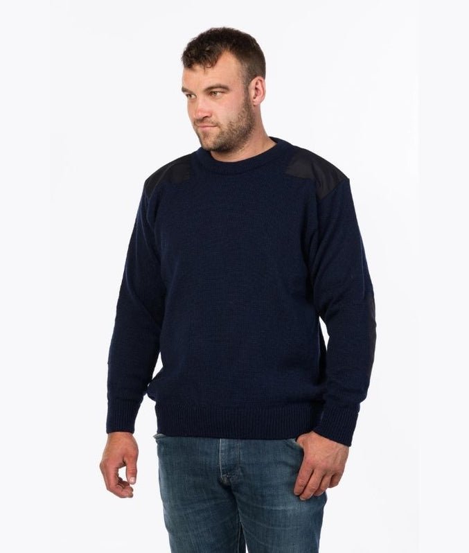 The Survival - A Classic workwear crew neck pullover jersey. Featuring cotton elbow and shoulder patches for added protection. Constructed from a blend of NZ Wool & Nylon for strength and durability. Hardwearing and practical, our range of workwear garments are designed to last!