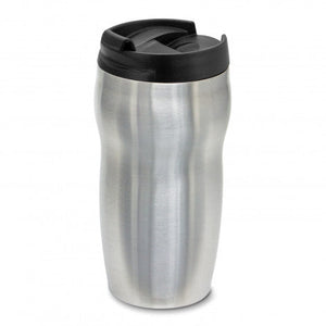 Premium 300ml double wall, vacuum insulated stainless steel coffee cup which will keep drinks hot for hours. It has a stunning contoured design that makes it incredibly comfortable and easy to hold. Mocka has a secure screw on lid with a splashproof flip closure and a soft non-marking base. The black and white cups laser engrave to a shiny steel finish and the silver cups engrave to a natural etch. It is BPA-free and is presented in a black gift box. This product is not dishwasher safe and handwashing is recommended.