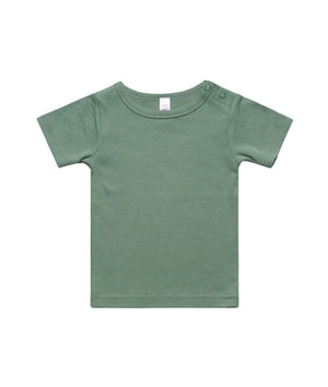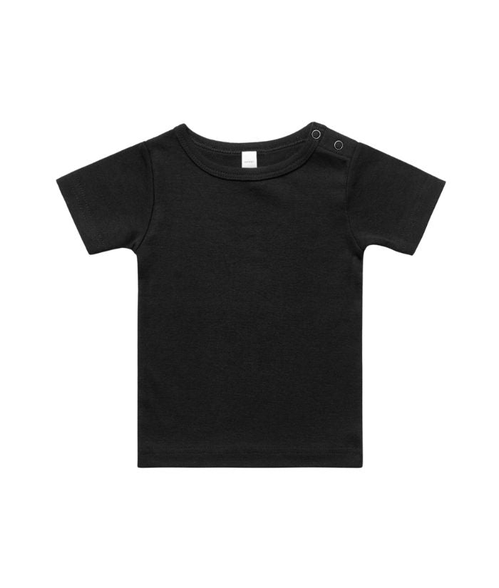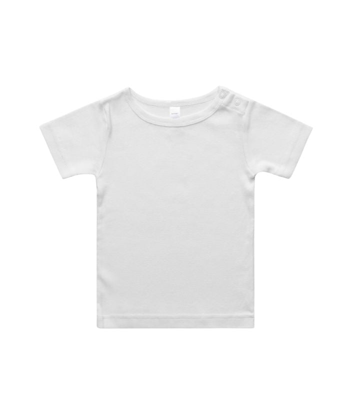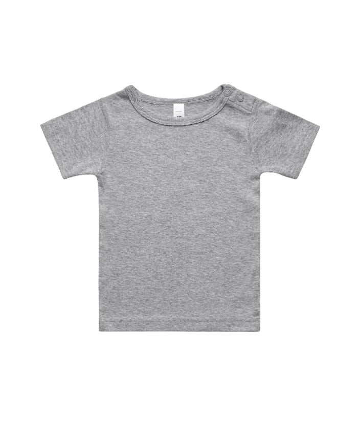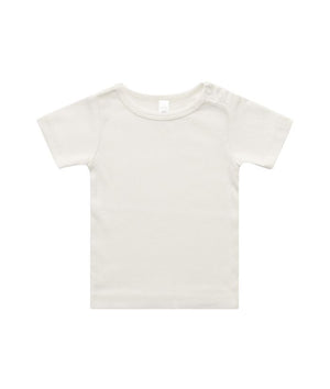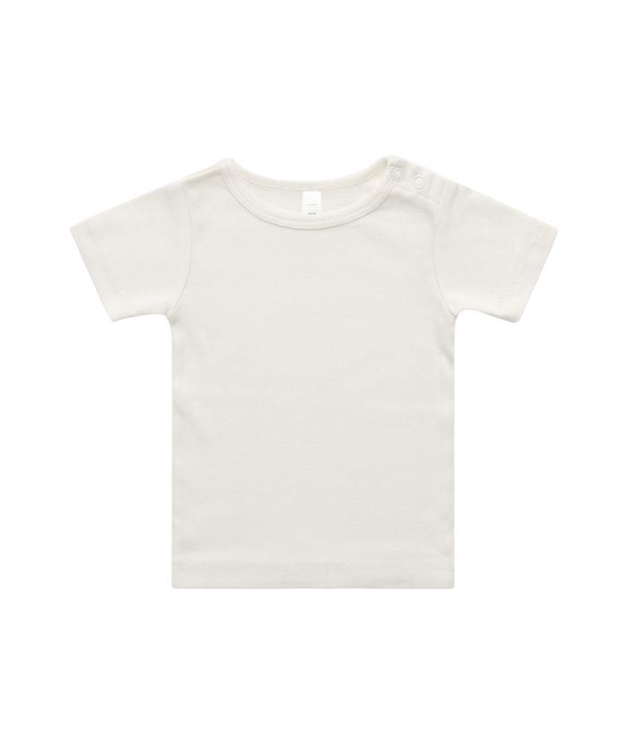 Tonal shoulder domes, 1x1 superfine printable rib, self-fabric neck binding, double needle hems, preshrunk to minimise shrinkage