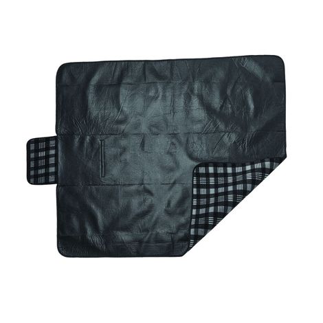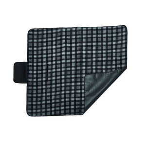 Tartan fleece blanket has a water resistant black PVA backing