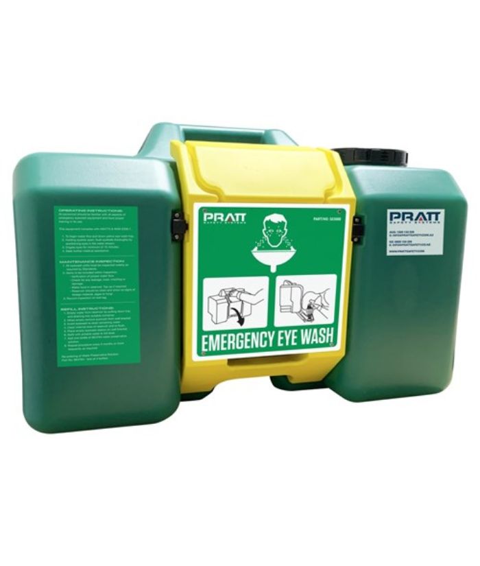 PRATT PORTABLE GRAVITY FED EYE WASH UNITS ARE FOR USE IN AREAS WHERE PLUMBED POTABLE WATER IS NOT AVAILABLE. The eye wash unit is designed mainly for wall mounting applications but can be used as a standalone unit on a shelf or a bench.