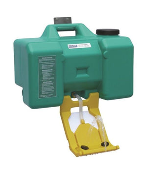 - Portable Eyewash Station (35L). It’s a compact portable, gravity fed eye wash unit that provides a minimum of 15 minutes continuous water flow.