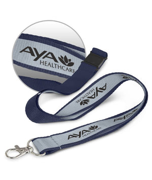 20mm wide polyester lanyard with a reflective strip on the front for added visibility and safety. It is ideal for people working at night or in poor light. The lanyard has a metal clip and a safety clip. Other attachments are available on request. A production lead time of 25 working days applies to this product by air freight and larger orders can be sea freighted on request to reduce the freight cost.