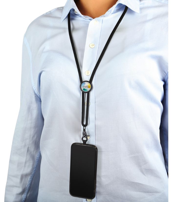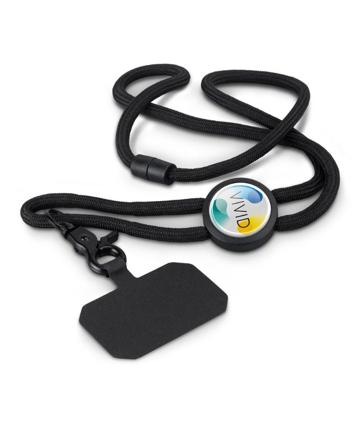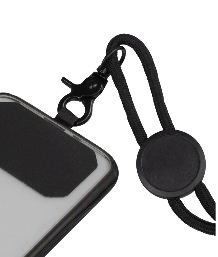 Handy 6mm lanyard that doubles as a phone strap. The universal insert card will go inside a phone case and can be used with any phone that has a case on. Roam comes with a round plastic slider that is a perfect branding opportunity.