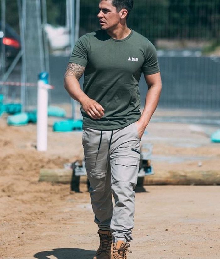 Drawstrings allow for the waist it to be tightened without the need for a belt. - Lightweight 280GSM pre-shrunk stretch FREEMOVE™ fabric (cotton/elastane).