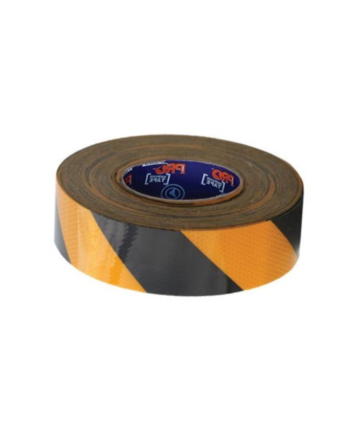 Self Adhesive Reflective Hazard Tape Yellow & Black. 50m x 50mm