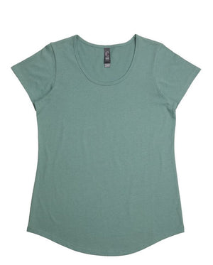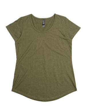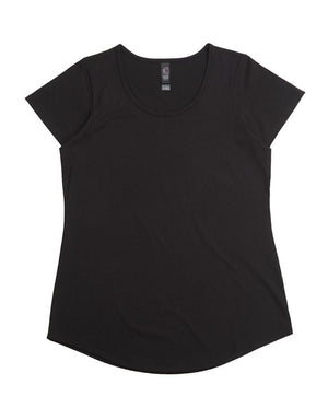 This 100% combed cotton T-shirt is a contemporary choice. Its scoop neckline and curved hem contour to the curves of your body ensuring a soft and flattering fit.