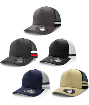A stylish accessory that effortlessly merges fashion and function, the playful stripes inject a burst of personality, inviting smiles and turning heads. With its deep crown and breathable mesh back providing comfort, it makes the perfect companion whether cruising down the highway or strolling through the city. The iconic Striped Trucker lets you express yourself with carefree charm.