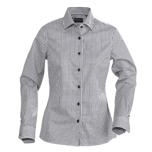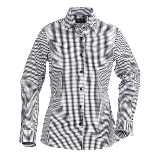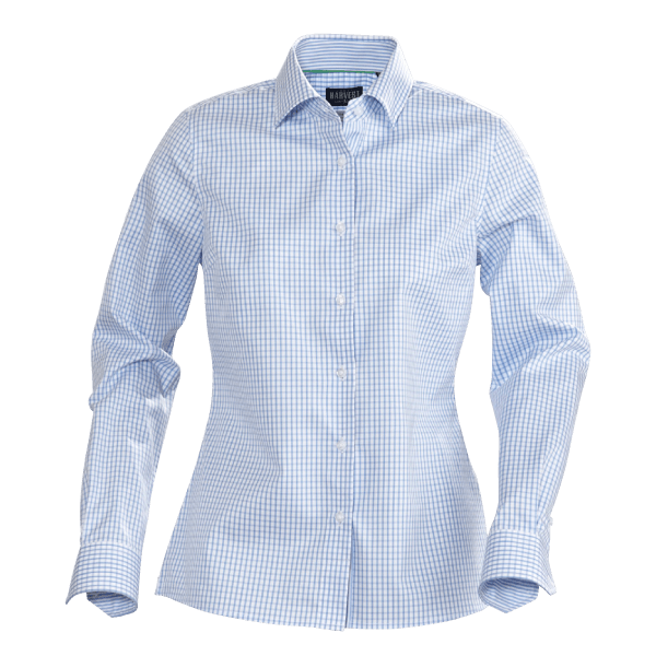 High quality ladies’ fitted blouse in easy care treated fabric. Reinforced seams in collar and sleeve ends.