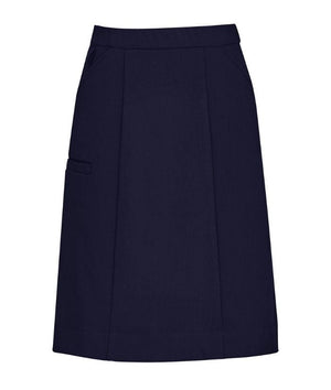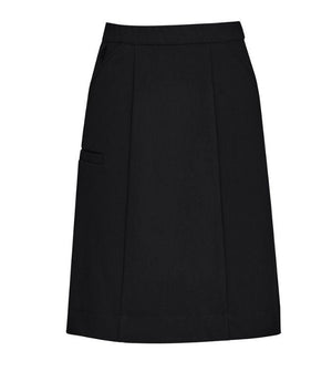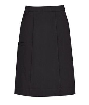 Cargo style skirt, welt pocket on right hand side with velcro closure, side pockets, key loop and mock pleat at back for modesty and movement