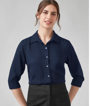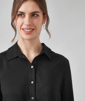 - Curved hemline, with longer back hem; Short sleeve and long sleeve blouse styles also available