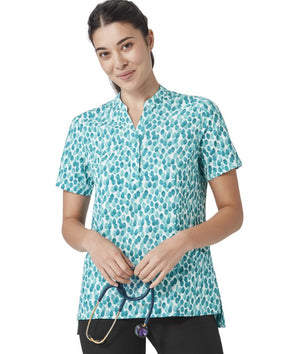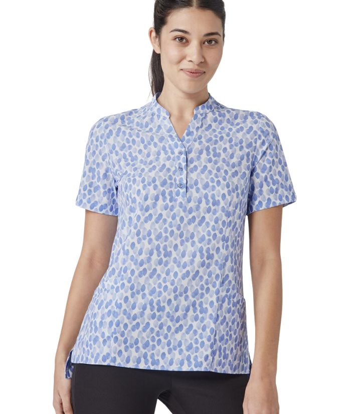 - Designed with a flattering Y-neck open and mandarin collar, simple lines and no chest pocket for a clean look