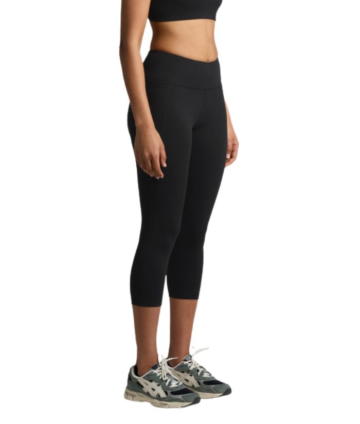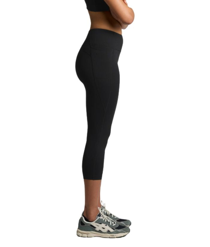 Matte finish, mid calf length, high waist, 2 x side pockets, contour seam detailing, moisture wicking, quick drying, high elastane content for resilience, suitable for low to medium impact activities