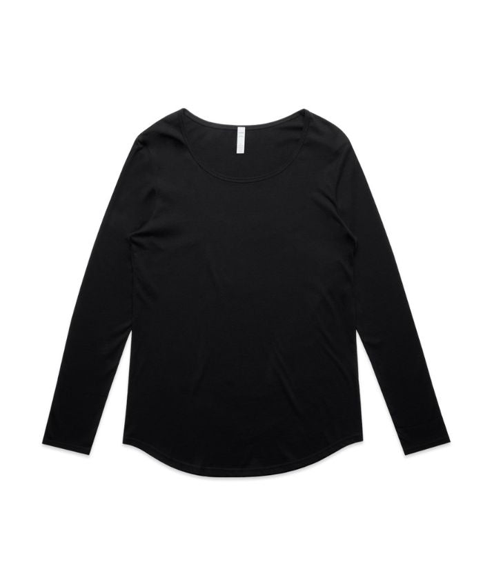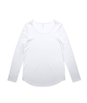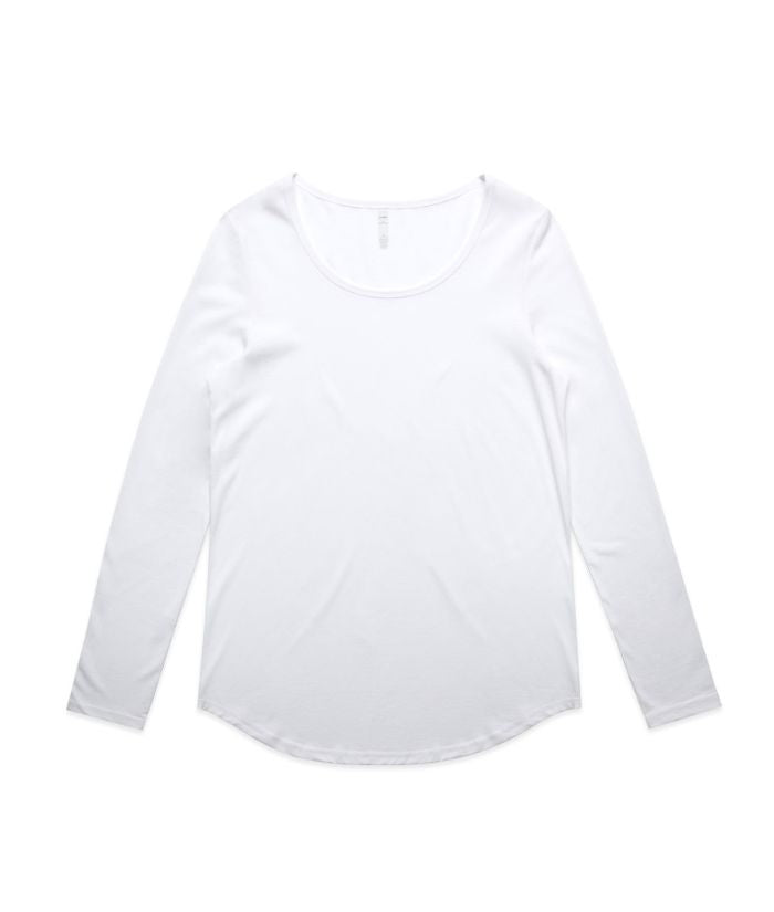 Scoop neck, curved hem, self-fabric binding on neck, side seamed, double needle hems, preshrunk to minimise shrinkage